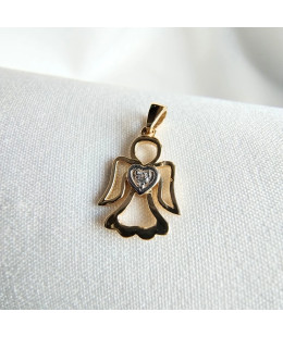 Golden angel pendant with Zircon. You can find matching earrings in our auction. (Pattern no. 3.2435)