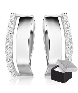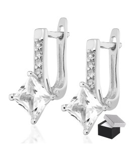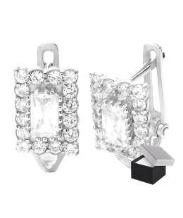 Sterling silver leverback earrings featuring a rectangular centre zirconia surrounded by white cubic zirconia stones, measuring approximately 12.3 × 7 mm. Elegant and eye-catching, perfect for refined everyday wear or special occasions.
