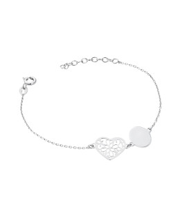 Beautiful romantic silver bracelet adorned with a filigree heart and a small circle charm. Exceptionally feminine hand decoration suitable for any occasion. It is possible to place an inscription on the plate.