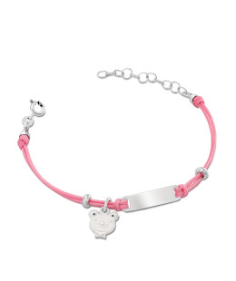 Lovely colorful bracelet for a girl made of pink cord, rhodium-plated silver elements, and enamel. It will delight any young lady. The jewelry is perfect as a gift. It is possible to place an inscription on the plate.Children's Bracelet with Cherries ENGRAVING.