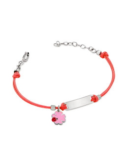 Beautiful colorful bracelet for a girl made of colorful string in red, rhodium-plated silver elements, and enameled. It will delight every young lady. The jewelry is perfect as a gift. It is possible to place an inscription on the plate (FREE).Delicate sterling silver bracelet featuring a symbolic angel charm and a smooth engravable plate. Lightweight, adjustable and designed especially for children. A meaningful personalised gift for special occasions.