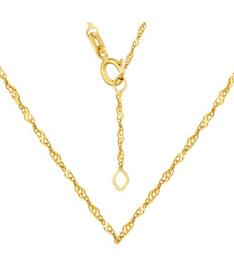 A gold chain with a Singapore weave is an extremely charming and elegant piece of jewelry that captivates with its subtle finesse and unique shine. Made of the highest quality gold with a 333 hallmark, this delicate chain is both an expression of luxury and classicism, perfectly suitable for any occasion. Its unique Singapore weave makes it extremely flexible and durable jewelry, ensuring that it will delight its owner for many years. Each link of this chain is intricately constructed, creating a harmonious pattern that gently reflects light, creating a striking glow. It's a perfect addition to everyday attire, adding subtlety and elegance. However, this chain is equally suitable for special occasions, highlighting the charm and beauty of its wearer. A gold chain with a Singapore weave is not just jewelry, it's also an expression of style and class that will remain a legacy for future generations.