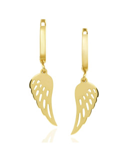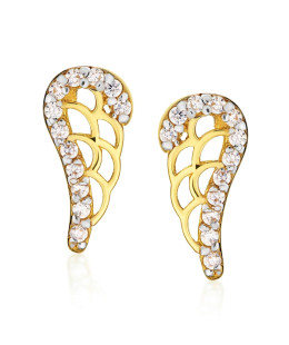 Very delicate golden earrings proposed in the form of a wing on a delicate stud. Extremely light and modern jewelry for any occasion. Golden earrings in the shape of angel wings are an interesting proposition for all ladies who love delicate yet stylish jewelry in a modern edition. Thanks to careful craftsmanship and attention to detail, they look beautiful on the ears. The stud closure makes them extremely comfortable to wear and practically unnoticeable. As a result, they can be worn all day, even during various sports activities. The earrings stay securely in place. This is an excellent everyday option that, in the company of additional jewelry elements, will also work for special occasions.