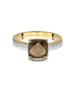 A gold ring in a classic shape with an exceptional smoky quartz is a true gem of jewelry, distinguished by its extraordinary beauty and elegance. The central stone, with a massive total weight of 2.00 carats, is a stunning smoky quartz that exudes a mysterious aura and subtlety. Its exceptional clarity and deep color give it a unique character. On the sides of the quartz are delicate diamonds with a total weight of 0.03 carats, with H/Si2 clarity, which subtly surround it, highlighting its beauty. These stones add sparkle and elegance to the ring, creating a balanced and impressive composition. This ring is not just jewelry; it is an expression of exceptional taste and love for the extraordinary beauty of nature. An ideal gift for someone who values uniqueness and subtlety, this gold ring with smoky quartz will captivate with its uniqueness and delight the heart for many years.