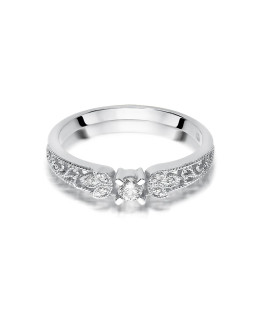 This gold ring is a true manifestation of classic beauty and elegance. Its central point is a diamond with an impressive weight of 0.30 carats, which emanates flawless brilliance and sophistication. However, that's not all - from this diamond beautifully extend diamonds that add extraordinary charm to it. The weight of the side stones, amounting to 0.14 carats, shines gently, enveloping the main stone. These diamonds, with H/Si2 clarity, emphasize both the beauty of the diamond and the classic design of the entire ring. The entire construction has been masterfully crafted from 585 gold, which gives the jewelry not only durability but also exceptional elegance. It's the perfect choice for any woman who wants to wear something that is both classic and enchanting with its charm, expressing her unique style and beauty.