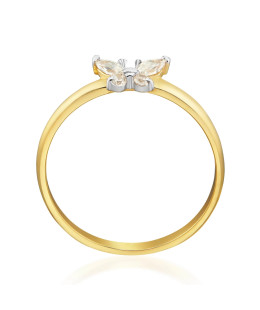 Beautiful golden ring with a butterfly pattern adorned with stones in white gold. Extremely feminine and subtle form of women's jewelry. It is possible to complete with earrings.Gold ring with zirconia HEARTS