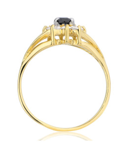 An extraordinary gold ring with a high 585 fineness is a true ode to beauty and class. Perfectly crafted from yellow gold, it exudes a subtle glow that catches the eye and captivates. The heart of this jewelry masterpiece is a charming flower adorning the ring's crown. This intricately crafted motif, full of delicate details, centers around the main stone – a ruby with a deep, intense shade of red. Its uniqueness and symbolism encompass love, passion, and vitality. The ruby is surrounded by white cubic zirconia, which wonderfully contrast with the intense color of the central stone, giving the composition clarity and brilliance. It's not just jewelry, it's a small work of art that tells a story of individuality and special moments. The 585 gold fineness ensures not only beauty but also durability and excellent quality, adding luxury and elegance to the ring. The combination of warm gold, white cubic zirconia, and intense ruby creates a striking contrast that highlights both the style and emotions of the wearer. Let the ruby remind you of the passion and energy that drive our lives, and let the white cubic zirconia add sparkle to every moment when this unique ring becomes part of your story.