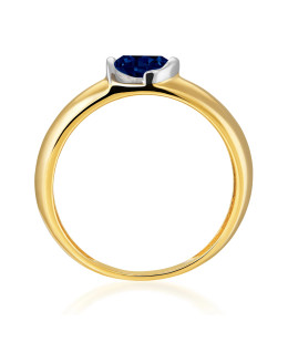 Beautiful golden ring with a centrally set large ruby stone and smaller side stones in white color. It looks extremely elegant, chic, and expressive. An ideal ring for a special occasion