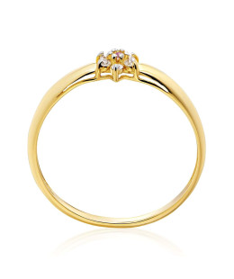 I present to you this charming gold ring that exudes classic elegance while concealing a delicate secret. It is jewelry that will captivate you with its unique charm. Made from the highest quality gold - 585, it is not only exceptionally durable but also beautifully shines, attracting attention. Its minimalist design in the form of a delicate band is timeless and suits any occasion. What makes this ring truly special is the subtle flower placed in its crown. The flower, composed of purple zirconia surrounded by white stones, adds extraordinary delicacy and romantic charm to the whole. Purple symbolizes mystery, while the white zirconia adds sparkle. This is jewelry that tells its story, symbolizing mysterious beauty and subtle feelings. This ring is not only an expression of style but also a perfect gift for a loved one. Its delicacy and at the same time expressive character make it an ideal choice for an engagement or symbolic gift. Regardless of the occasion, this ring will remind you of love, delicacy, and unique beauty that can be found in simple things. Enjoy its shine and symbolism for many years, as it is jewelry that will stand the test of time.