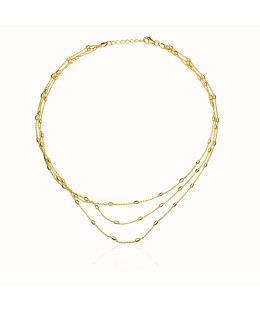 Gold-plated necklace with three chains and beads