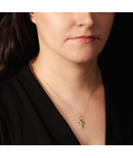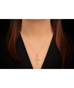 Made with the utmost precision, a gold cross with Jesus. The design combines the beauty of yellow and white gold. Adorned with small zircons.PENDANT - CROSS