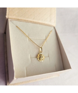 Gold pendant angel with heart. The offer concerns only the pendant. Chain available for sale.Precisely crafted gold medallion of 585 fineness. A wonderful medallion with the image of the Virgin Mary. A gold medallion is a keepsake for baptism, first communion, confirmation, an important jubilee, or anniversary. Average size of the entire medallion without the pendant: 14 mm Height of the entire medallion with the pendant: 21mm Width of the medallion: 7mm Height of the medallion: 9mm Chain sold separately.