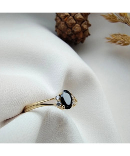 Gold ring with a large blue stone 585 proof