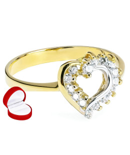 Classic ring design with a beautifully showcased stone. Decorated with small cubic zirconia on the sides. On the hand, it will look feminine, attractive, and impressive.Gold ring with cubic zirconia HEART