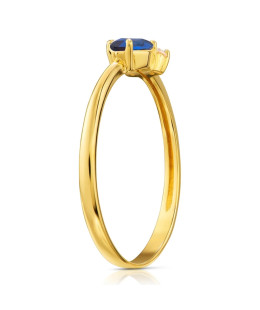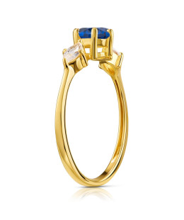 Elegant 14ct yellow gold ring featuring a large blue centre stone surrounded by sparkling cubic zirconia. A timeless gold ring designed to stand out with colour, brilliance and refined craftsmanship.