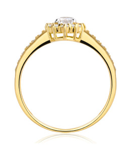 Made from the highest quality 333 gold standard, our ring exudes delicacy and classicism. Its unique design stands out especially thanks to the main leaf-shaped cubic zirconia, charmingly surrounded by side-set cubic zirconias, adding exceptional sparkle.