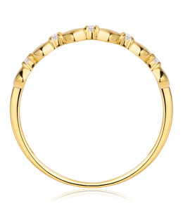 A gold ring with a unique chain pattern adorned with sparkling cubic zirconia is an excellent choice for those seeking an elegant and stylish accessory.