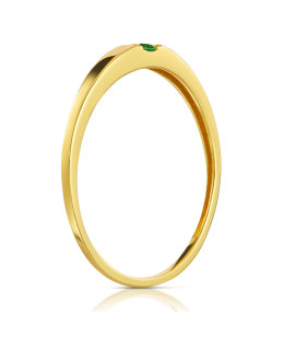Gold ring with a beautifully integrated green central stone. On a woman's hand, the ring looks very feminine, delicate, and elegant.