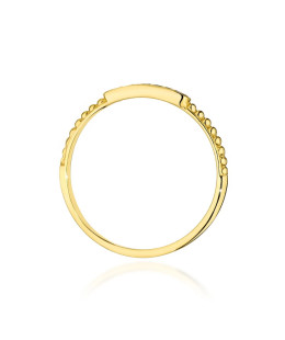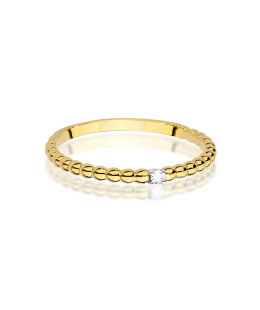This exceptional 14k gold ring is the essence of classic elegance that never loses its charm. Its carefully designed pattern, based on a traditional shape, is a reflection of eternal beauty. The main feature of this ring is a 0.02-carat diamond, with H/Si2 clarity, which gently emanates brilliance and enchants with its subtlety. The band of this ring has been crafted in an extremely original way, taking the form of charming beads. These details give the entire design a unique character and add delicacy to it. The 14k gold ensures durability and high quality of the jewelry, making this ring not only beautiful but also practical and durable. The diamond is a symbol of eternal love and perfection, making this ring an ideal gift for a loved one. Its brilliance and subtlety catch the eye and make wearing it on the finger not only an expression of style but also of a special feeling. This is jewelry that will accompany you for years, maintaining its beauty and value. In summary, this 14k gold ring with a 0.02ct diamond is a combination of classic and subtlety. Its design is timeless, yet unique thanks to the original bead-shaped band. This is jewelry that conveys many emotions and feelings, perfect for special occasions and exceptional moments in life.