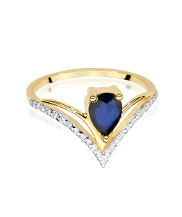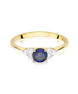 A gold ring in a classic shape is a true gem that exudes elegance and unique charm. Its central element is a beautiful sapphire surrounded by sparkling diamonds. This sapphire, weighing 0.15 carats, captivates with a deep, intense blue glow, symbolizing peace and wisdom. Beautifully surrounding it are diamonds with a total weight of 0.07 carats and H/Si2 clarity, adding subtlety and gently shimmering in the light. The whole piece is meticulously crafted from the highest quality 585 gold, giving the ring durability and a unique shine. It is not just jewelry; it is a true masterpiece that expresses unique feelings and adds brilliance to the most important moments in life.