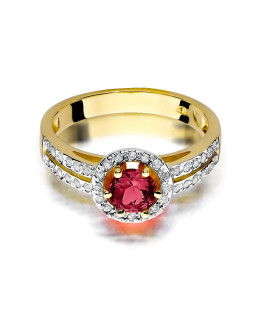 This exceptional gold ring is a true masterpiece of jewelry, exuding unique charm and extraordinary elegance. Its centerpiece is a ruby weighing a total of 0.60 carats, captivating with its intense, ruby-red color, symbolizing love and passion. This stone is not only remarkable for its color but also for its natural beauty, which is an expression of exceptional taste. But this is just the beginning of the story of this extraordinary ring. From the wave-shaped ruby extend sparkling diamonds with a total weight of 0.05 carats and excellent clarity H/Si2. These diamonds, like stars in the night sky, surround the main stone, creating impressive waves of luminous glow reminiscent of the sparkle of water in the sun. The whole is set in a solid 585 gold hallmark, emphasizing both the extraordinary design and the durability and quality of craftsmanship. This ring is not just jewelry; it is an expression of love, elegance, and uniqueness. Perfect for both special occasions and everyday wear, this ring attracts attention with its unique design and richness of colors.