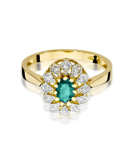 This gold ring is a true piece of jewelry, combining classic design with the extraordinary beauty of an emerald. The central stone of this exceptional ring is an impressive emerald weighing 0.40 carats, skillfully set in a delicate 585 gold setting. The emerald captivates with its deep green color, which is both intense and subtle, creating a striking contrast with the shimmering gold. The setting of the emerald features a floral motif, composed of diamonds with a total weight of 0.10 carats and clarity H/Si2, adding extra charm and delicate sparkle to the ring. The whole piece is not only elegant but also full of symbolism, reminiscent of a flower in full bloom. This ring is a perfect choice as a gift for a special person or for important life occasions. It is jewelry that exudes prestige and beauty, ideal for those who appreciate classic and exceptional quality in jewelry.