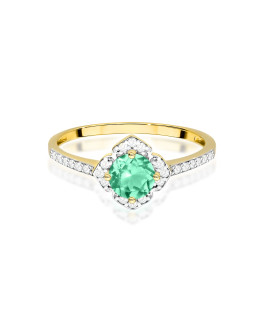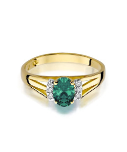 A gold ring in a classic shape with an emerald is a unique jewel that captivates with its elegance and unique charm. Its heart is a beautiful emerald weighing 0.40 carats, which radiates an intense green color, symbolizing life, harmony, and the beauty of nature. On both sides of the emerald, carefully selected diamonds are placed, a total of 6 stones weighing 0.05 carats, with excellent clarity H/Si2. These small diamonds add sparkle and subtlety, perfectly complementing the main stone. The whole is made of 585 gold, emphasizing its exclusive character, durability, and refined style. This is jewelry that stands out with its classic and timeless beauty, perfect for important occasions, symbolizing love and the uniqueness of the moment. This ring is not only an expression of good taste but also an excellent investment that will surely attract attention and leave an unforgettable impression.