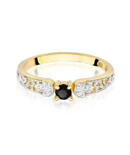 A gold ring with a classic shape is an expression of luxury and elegance, containing an extraordinary harmony of contrasts. Its main element is a dazzling black diamond weighing 0.50 carats, which forms the heart of this jewelry. This unique stone, with H/Si2 clarity, emanates a mysterious glow, attracting attention and reminding of constant delicate power. It is surrounded by sparkling diamonds with a total weight of 0.10 carats, which, like stars in the night sky, surround the moon. The whole is set in delicate 585 gold, giving the ring durability and exceptional shine. It is not just jewelry, it is a work of art that delights with its simplicity and at the same time richness of details, making it the perfect accessory for the most important moments in life.