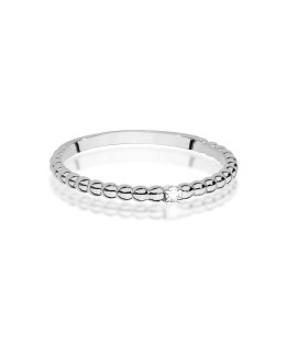 This exceptional gold ring with a 585 hallmark is the essence of classic elegance that never loses its charm. Its carefully designed pattern, based on a traditional shape, is a reflection of eternal beauty. The main feature of this ring is a 0.02-carat diamond, with H/Si2 clarity, which gently emanates brilliance and enchants with its subtlety. The band of this ring has been crafted in an extremely original way, taking the form of charming beads. These details give the entire design a unique character and add delicacy to it. White Gold with a 585 hallmark guarantees durability and high quality of the jewelry, making this ring not only beautiful but also practical and durable. The diamond is a symbol of eternal love and perfection, making this ring an ideal gift for a loved one. Its brilliance and subtlety catch the eye and make wearing it on the finger not only an expression of style but also of a special feeling. This is jewelry that will accompany you for years, maintaining its beauty and value. In summary, this 585 gold ring with a 0.02ct diamond is a combination of classic and subtlety. Its design is timeless, yet unique thanks to the original band in the form of beads. This is jewelry that conveys many emotions and feelings, perfect for special occasions and exceptional moments in life.