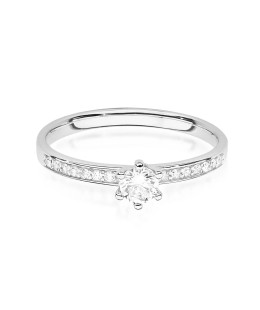 A gold ring with a classic shape is the essence of elegance and timeless beauty. Its uniqueness is highlighted by a central diamond stone weighing 0.10 carats, radiating brilliance and a wonderful clarity of H/Si2 type. It is a stone that draws attention and attracts gazes, being an extremely striking element of this exceptional ring. In addition, the ring is adorned with side stones weighing 0.03 carats each, which interweave the gold band, creating a harmonious and subtly shimmering composition. The whole is made of high-quality 585 gold, which guarantees durability and quality, making this ring not only a beautiful accent but also a symbol of love and refined style.