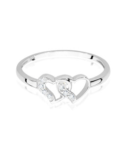 This gold ring is not just jewelry, it's an expression of love and romance. Its classic shape in the form of two connected hearts symbolizes a strong feeling and bond between two people. The hearts are delicately adorned with diamonds that beautifully highlight their contours. These stones, with a total weight of 0.06 carats and H/Si2 clarity, shine with a subtle glow, giving the ring a unique charm. The gold band with a 585 hallmark adds durability and elegance. It's not just jewelry, it's a message of love that will last forever. This ring is not just an ornament, it's an expression of feelings through which one can express love and devotion. It's also a perfect gift that will surely be appreciated by a loved one.