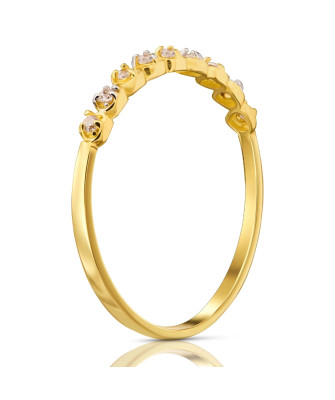 Delicate gold ring in 333 purity. Interesting crown with one large centrally placed zirconia and eight smaller ones arranged in a line
